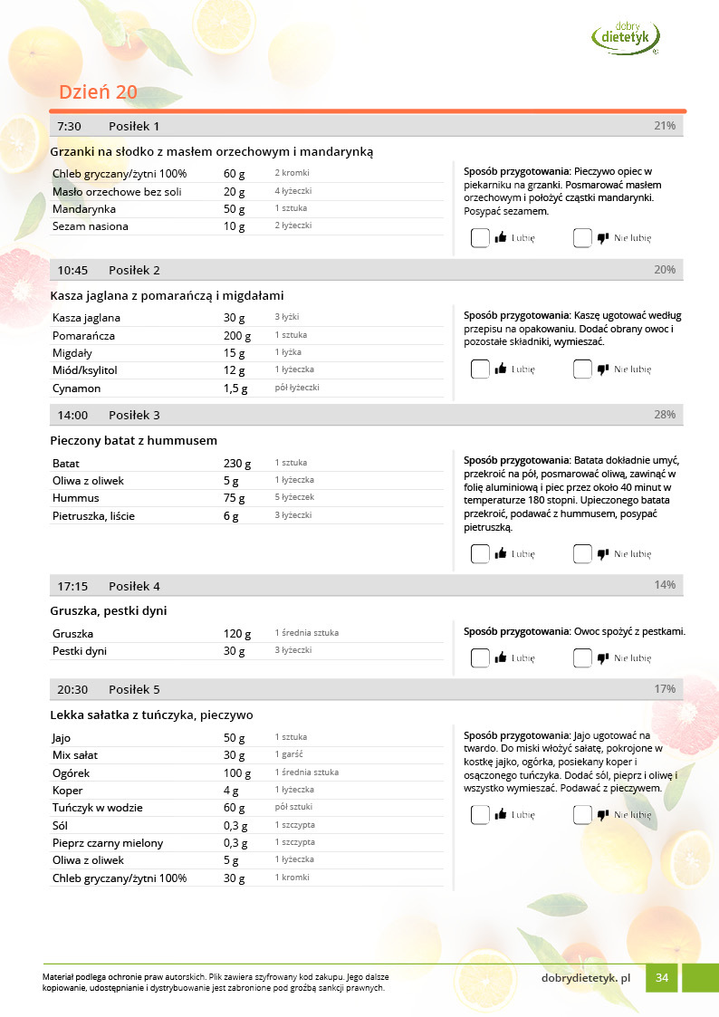• Liczba posiłków w ciągu dnia: 5